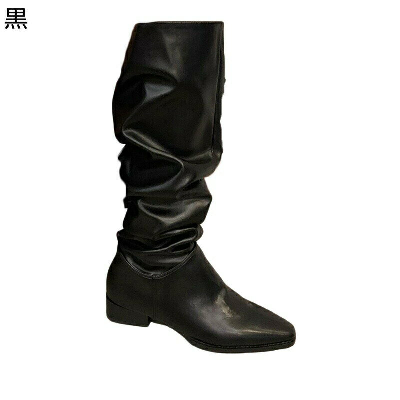 ドレープブーツ ロングブーツ レディース ロング 膝下 くしゅくしゅ 秋冬 太ヒール ミドルヒール スクエアトゥ ジップ 秋冬着 美脚 やわらか 歩きやすい トレンド ファッション 日常 普段履き