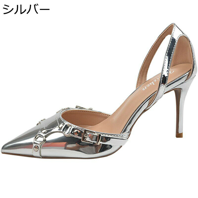 ポインテッドトゥ サンダル レディース ピンヒール メタリック クローズドトゥ スリッポン 調整可能 6cmヒール 夏 Tストラップ 防滑 ファッション 防水 牛革 フィット感 仕事 日常用 お出かけ