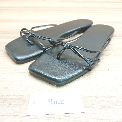 LANNE ランネ シンプル スクエアトゥ ぺたんこ 夏物 大人っぽい サンダル サイズ24 ブラック レディース 【中古】
