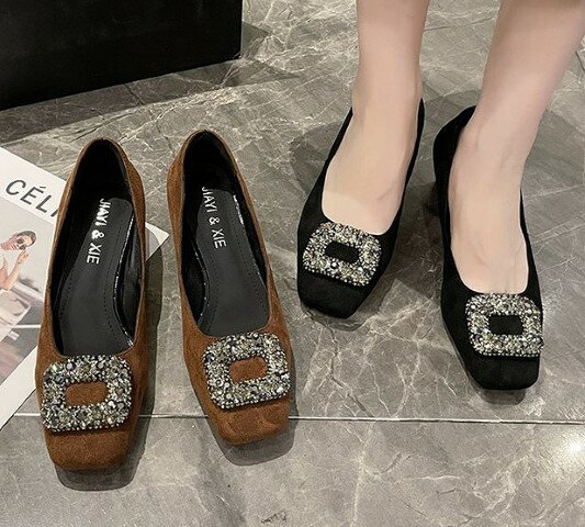 スクエアトゥ パンプス レディース 歩きやすい ローヒール ブラック ホワイト ブラウン カーキ バブーシュ レディース 靴 くつ 軽量 痛くない 送料無料