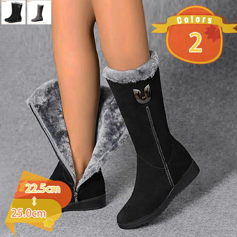 サイハイブーツ 冬の女性の無地のスエードブーツローヒールミッドチューブ秋暖かいクラシックブーツソフト女性 ロングブーツ レディース 黒 ローヒール ブーツ ロング丈 シンプル