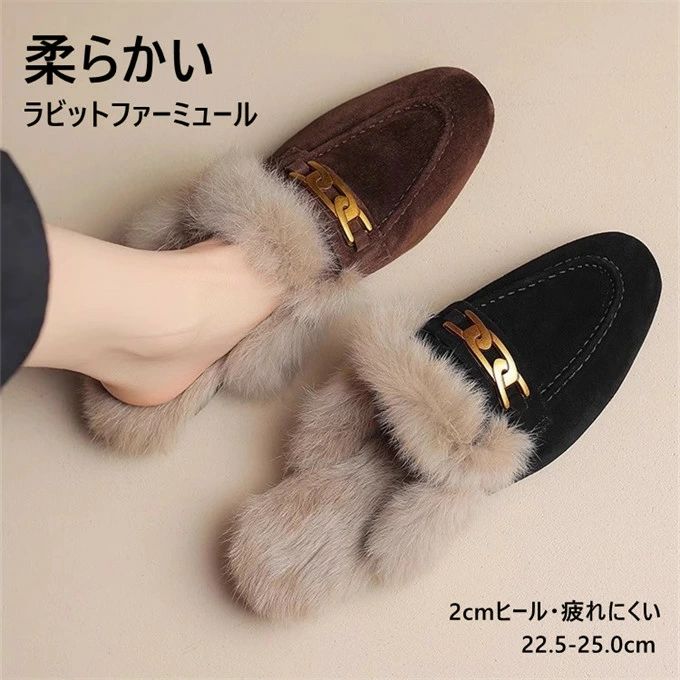 ミュール ファーサンダル 女性 ラビットファー ファースリッパ