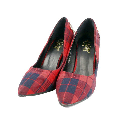 【中古】チェスティ Chesty パンプス ポインテッドトゥ ピンヒール フェイクレザー ビジュー チェック M 赤 レッド /TM レディース
