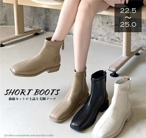 歩きやすく痛くない快適設計のレディースショートブーツ 軽量合皮素材で秋冬の通勤や普段使いに最適なローヒール仕様