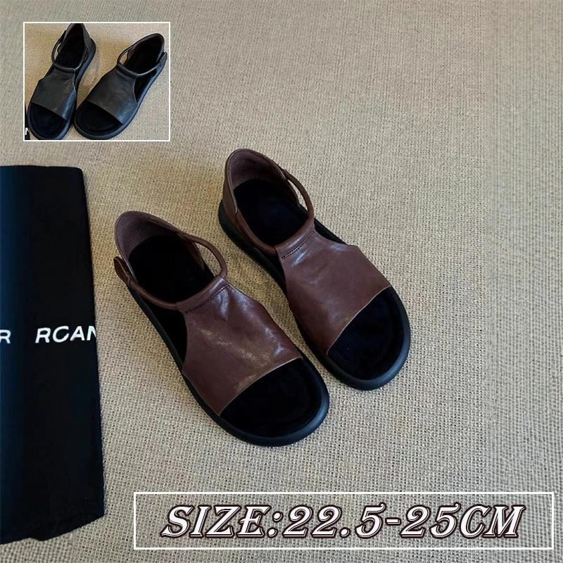 レトロで落ち着いた雰囲気の厚底ローマサンダル。赤褐色の上品な