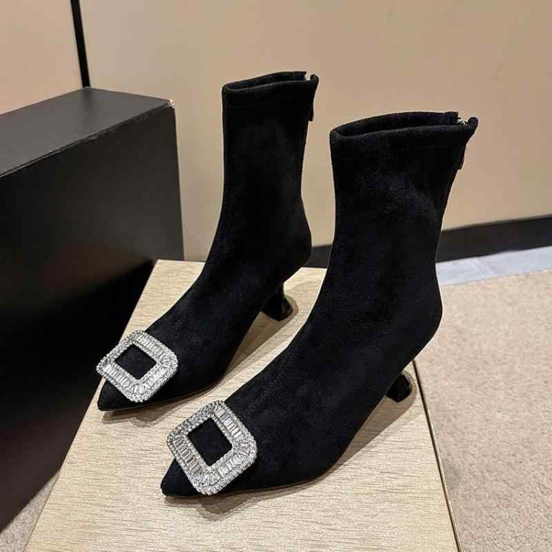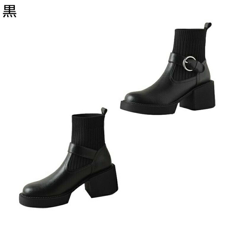 ソックスブーツ ショートブーツ レディース ハイヒール7cm 本革 レザー 革靴 粗いかかと スクエアトゥ 歩きやすい ストレッチブーツ カジュアル 冬用 秋用 歩きやすい 通勤 オフィス