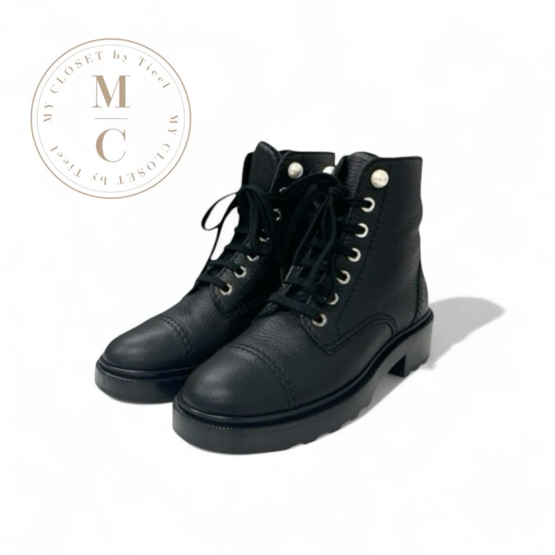 シャネル CHANEL ブーツ ショートブーツ 靴 シューズ レザー ブラック 黒 ココマーク パール レースアップ 送料無料