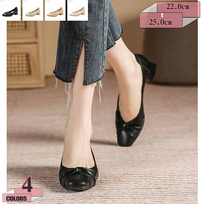 パンプス レディース スクエアトゥ ローヒール ビジネス 大きいサイズ 小さいサイズ 歩きやすい ニット 通気性 太めヒール 安定感 フラットシューズ 大人 カジュアル ペタンコ ニットパンプス