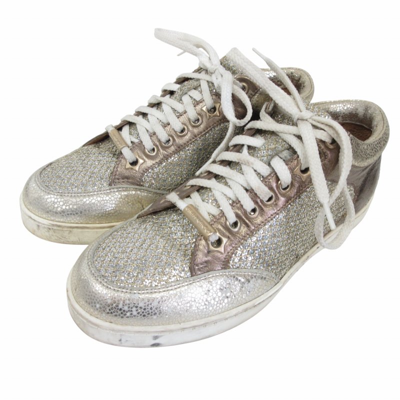 【中古】ジミーチュウ JIMMY CHOO LONDON ラメ スニーカー パイソン柄 レザー シルバー 34 21cm相当 IBO76 レディース 【ベクトル 古着】 2