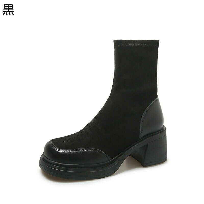 ショートブーツ 短め レディース スエード ストレッチ 切り替え ジップ スクエアヒール スクエアトゥ 秋靴 冬靴 カジュアル つま先ゆとり 耐久 防滑 安定感 走れる 美脚 おしゃれ 女性用