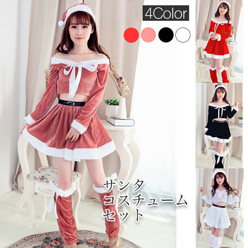サンタ コスプレ クリスマス 衣装 レディース コスチューム 仮装 ワンピース サンタコス トップス スカート ミニスカ レッグウォーマー 帽子 セット 長袖