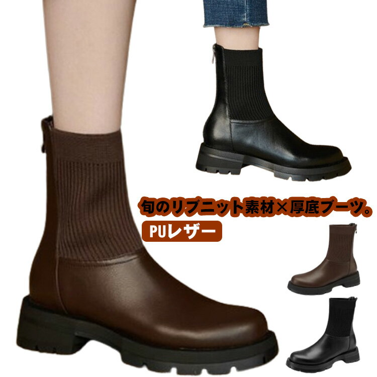 通勤 通学 通学 オフィスカジュアル リブニットブーツ ソックスブーツ 秋冬 サイドブーツ