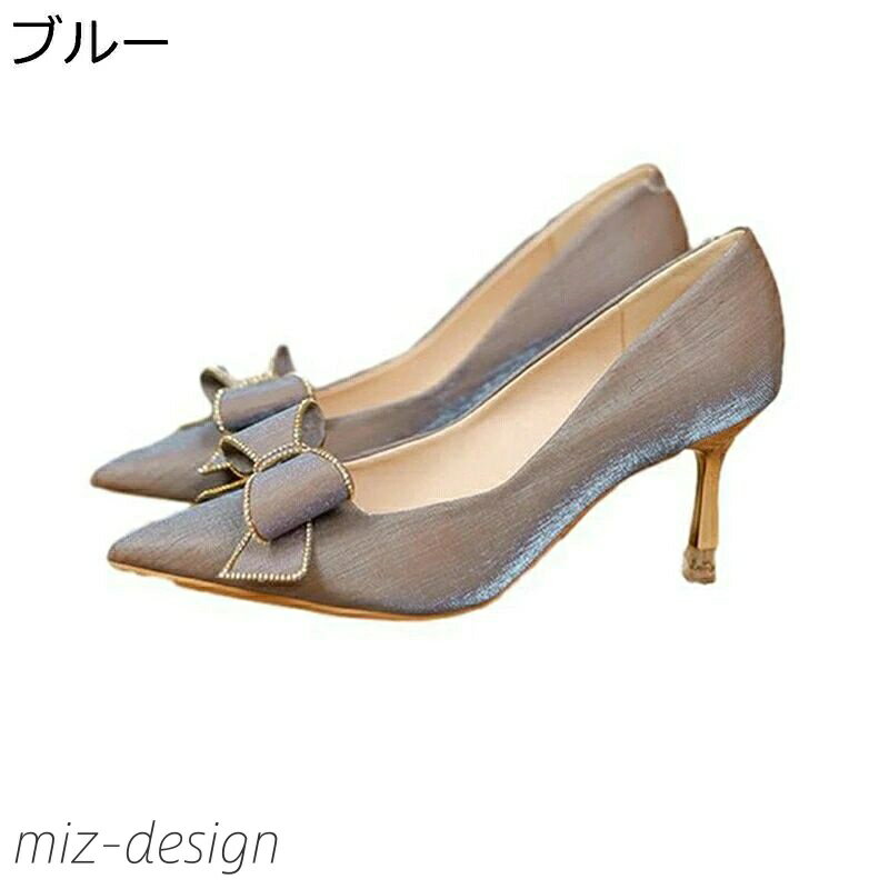 【送料無料】ハイヒール リボンパンプス パンプス 素足 美脚 ポ