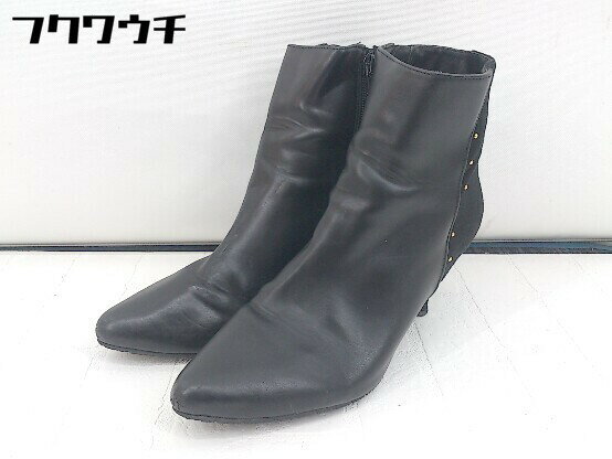 ■ ILIMA イリマ サイドジップ スタッズ ポインテッドトゥ ヒール ショート ブーツ サイズ24cm ブラック レディース 【中古】