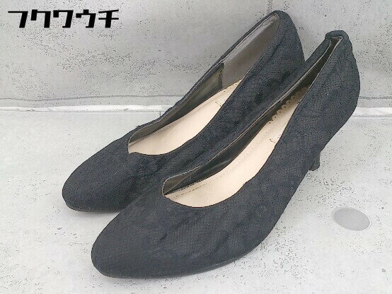 ◇ PRIVATE LABEL プライベートレーベル ラウンドトゥ レース パンプス 22.5cm ブラック レディース 【中古】