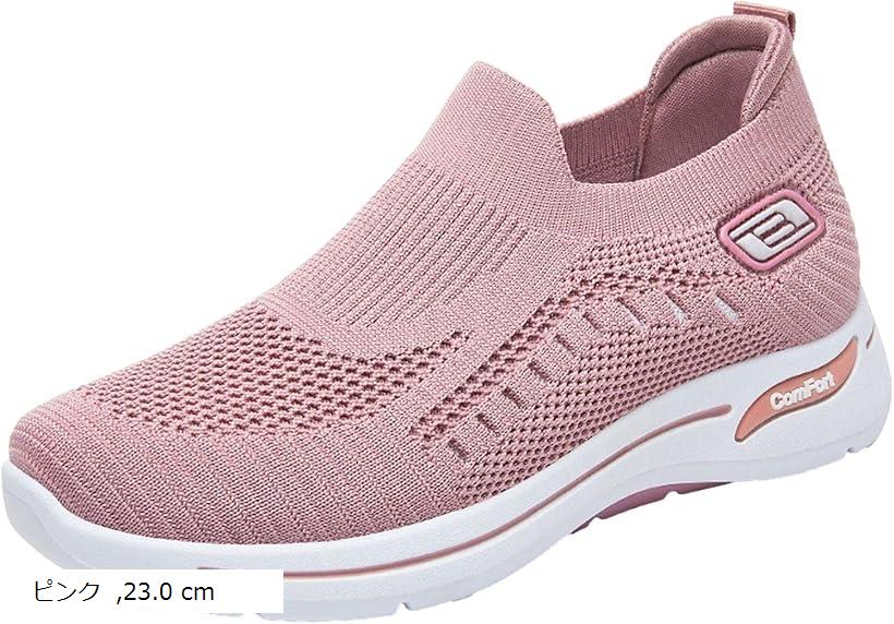 スニーカー レディース スリッポン 軽量 屈曲性 防滑 ウォーキング 職場 (ピンク, 23.0 cm)