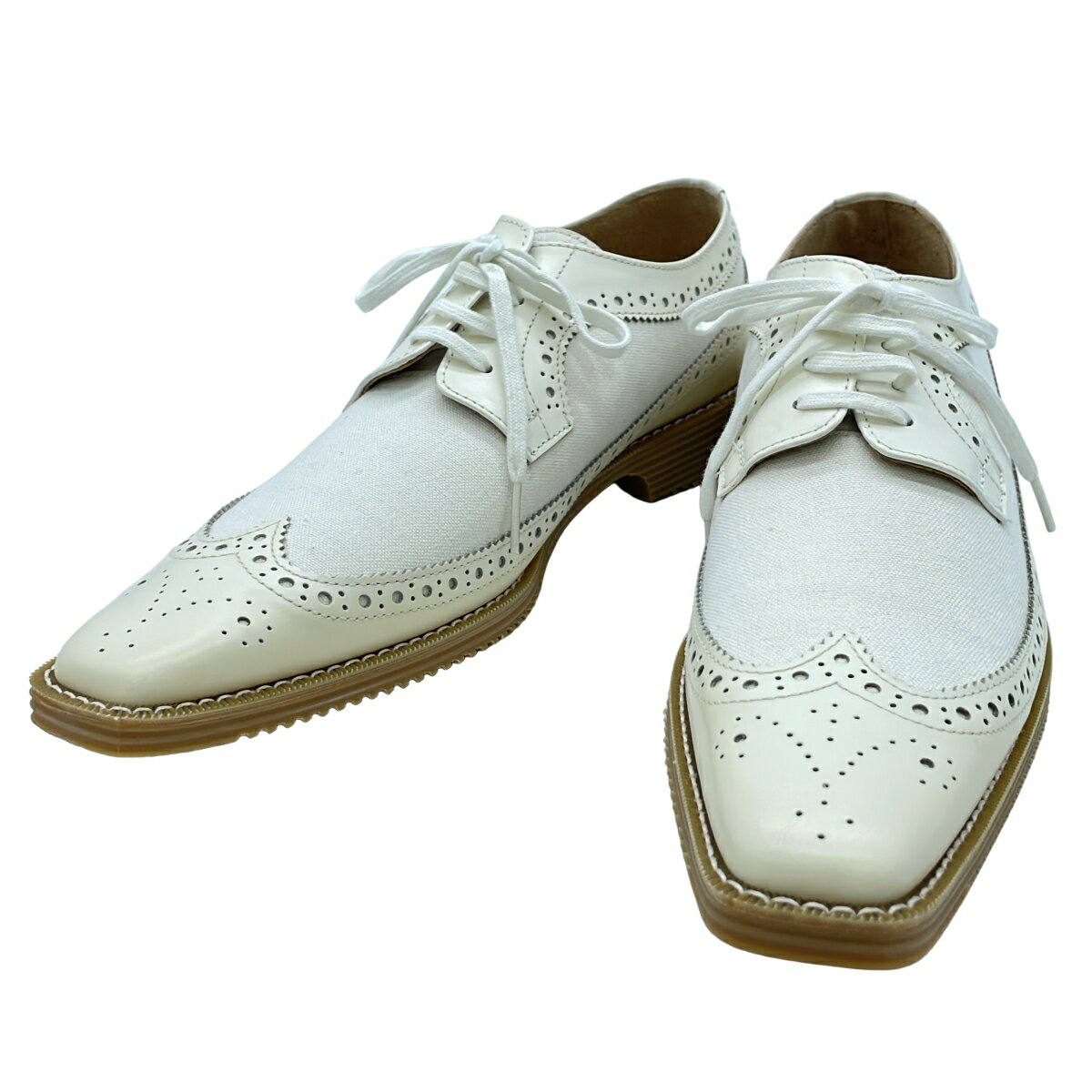 COMME des GARCONS コムデギャルソン キャンバスレザーメダリオンドレスシューズ GE-K104 ホワイト 24cm 【中古】 ITZJW3OUGCWB