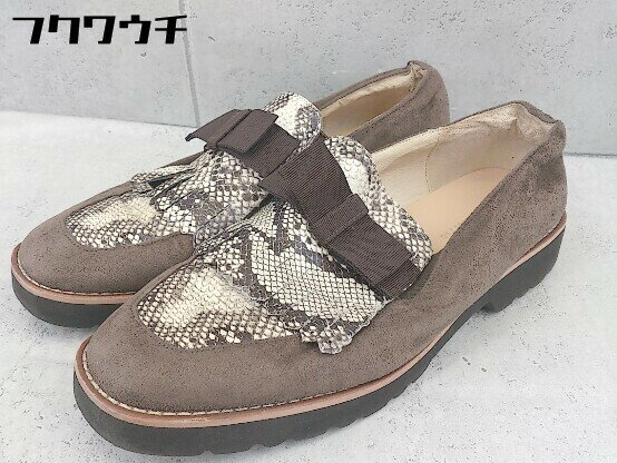 ◇ COULEUR VARIE クロールバリエ パイソン 型押し モカシン シューズ サイズ22 グレー レディース 【中古】