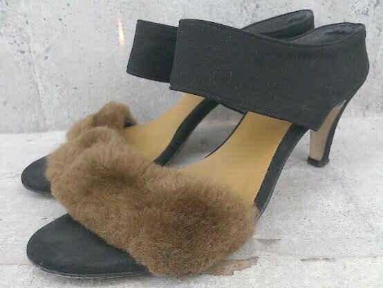 ◇ STUDIOUS ステュディオス フェイクファー ヒール サンダル サイズM ブラック ブラウン レディース 【中古】