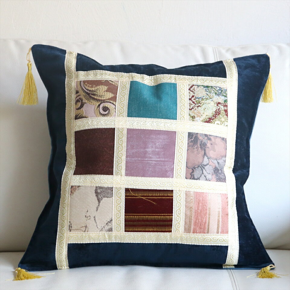 シュニール素材 モザイククッションカバー 45cmサイズ パッチワーク