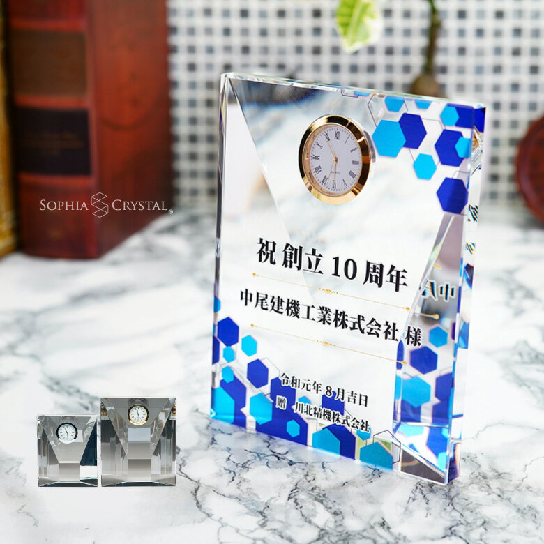 シンプルなデザインに背面側のカットが光を美しく反射する、高貴な雰囲気のクリスタル置き時計です。還暦 金婚式や銀婚式などの記念品にお勧めです。