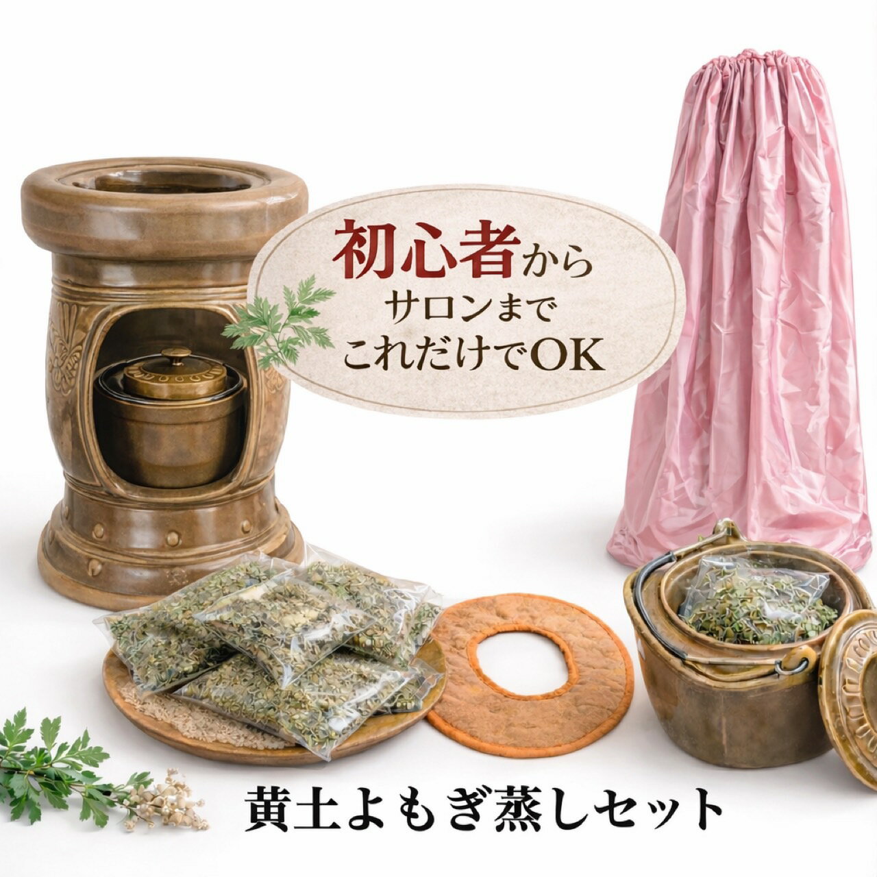 黄土よもぎ蒸しは600年前から韓国で行われている美容や健康の方法です。黄土よもぎ蒸し器の改良を重ね続けた研究者の25周年記念モデルになります。業務用でも使われる本格モデルです