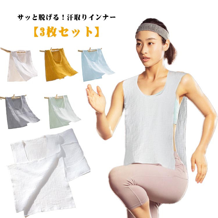 汗取りパッド ガーゼ 3枚セット 3枚セット 汗じみ 汗取りインナー 汗対策 防止 インナー 下着 サイドオープン 綿 コットン 薄手 サッと脱げる ダブルガーゼ Uネック 汗取りタオル 胸 背中 汗とりパット あせとり 汗取