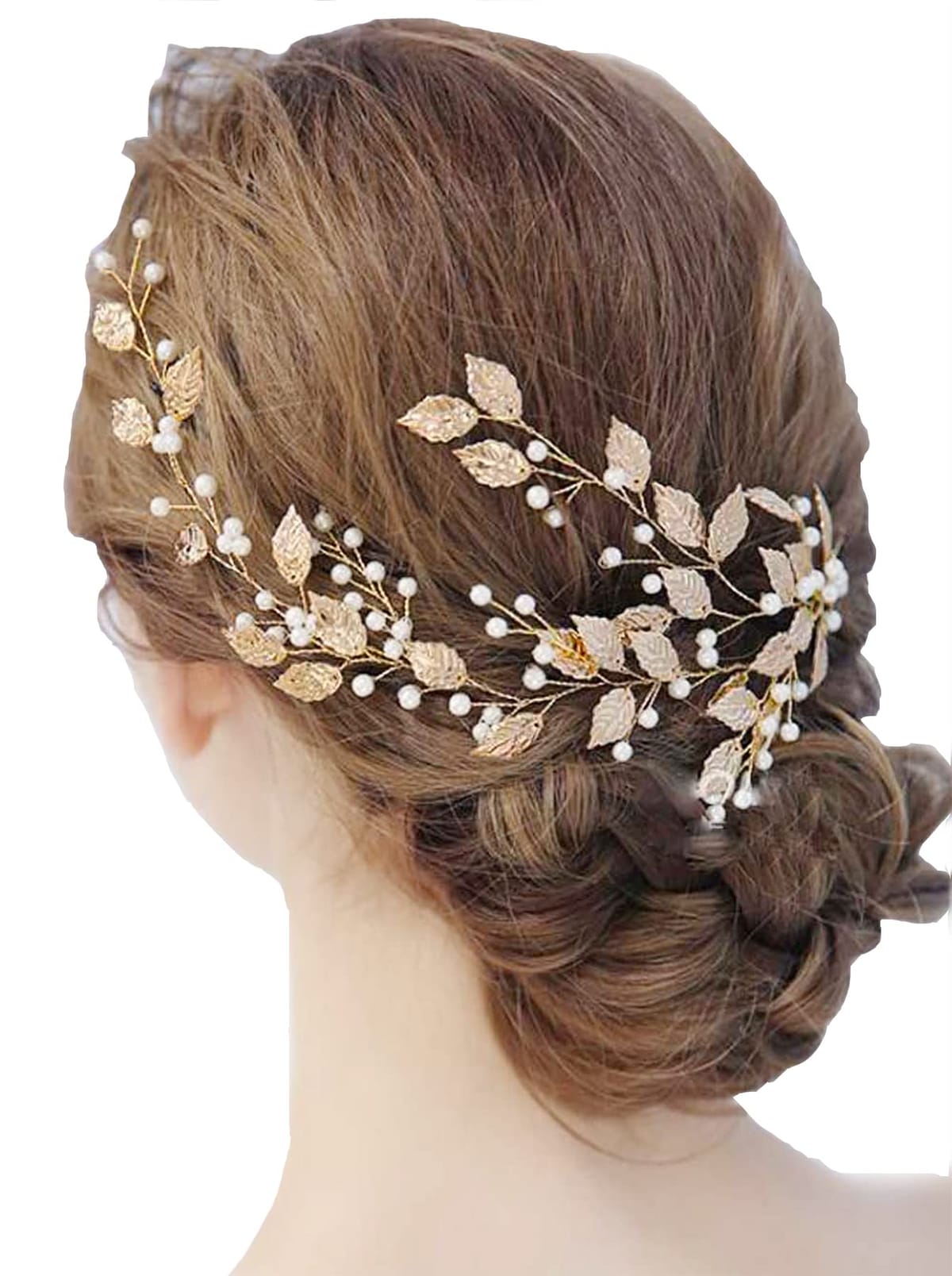ヘッドドレス 髪飾り ヘッドアクセサリー リーフ パール ウェディング ブライダル 成人式 卒業式 発表会 パーティー ゴールド