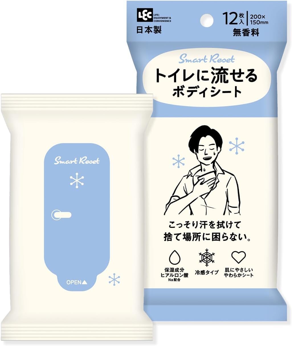 レック SmartReset 男性用 流せる ボディシート 無香料 12枚入