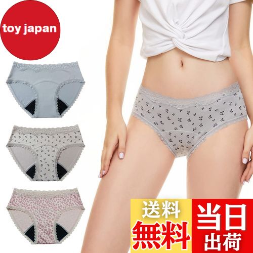 【送料無料】[BEST DOING] 生理用ショーツ レース付き 漏れない 蒸れない 吸水サニタリーショーツ 生理用吸水ショーツ パンツ 生理用 吸水ショーツレディース 3色セット 吸収パンツ 生理始まり終わる際 お昼用 色:無地+プリン柄セットA、サイズ:L