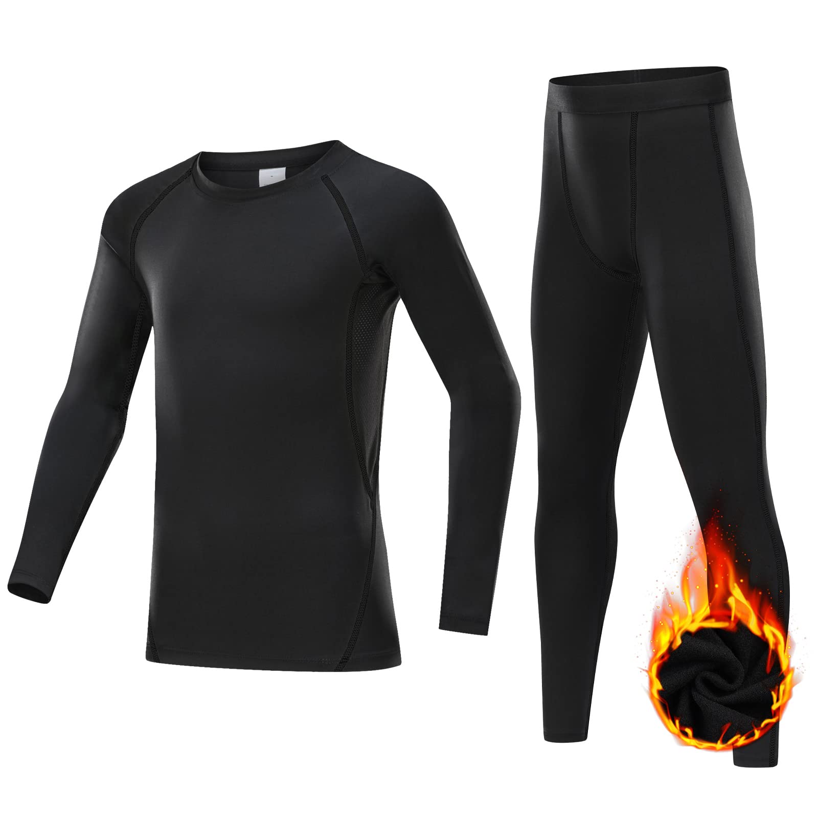 【送料無料】[Guooolex] スポーツインナー キッズ 上下セット コンプレッションウェア スポーツタイツ スパッツ シャツ 長袖 パワーストレッチ 吸汗速乾 色:ブラックブラック(上下セット)裏起毛、サイズ:150