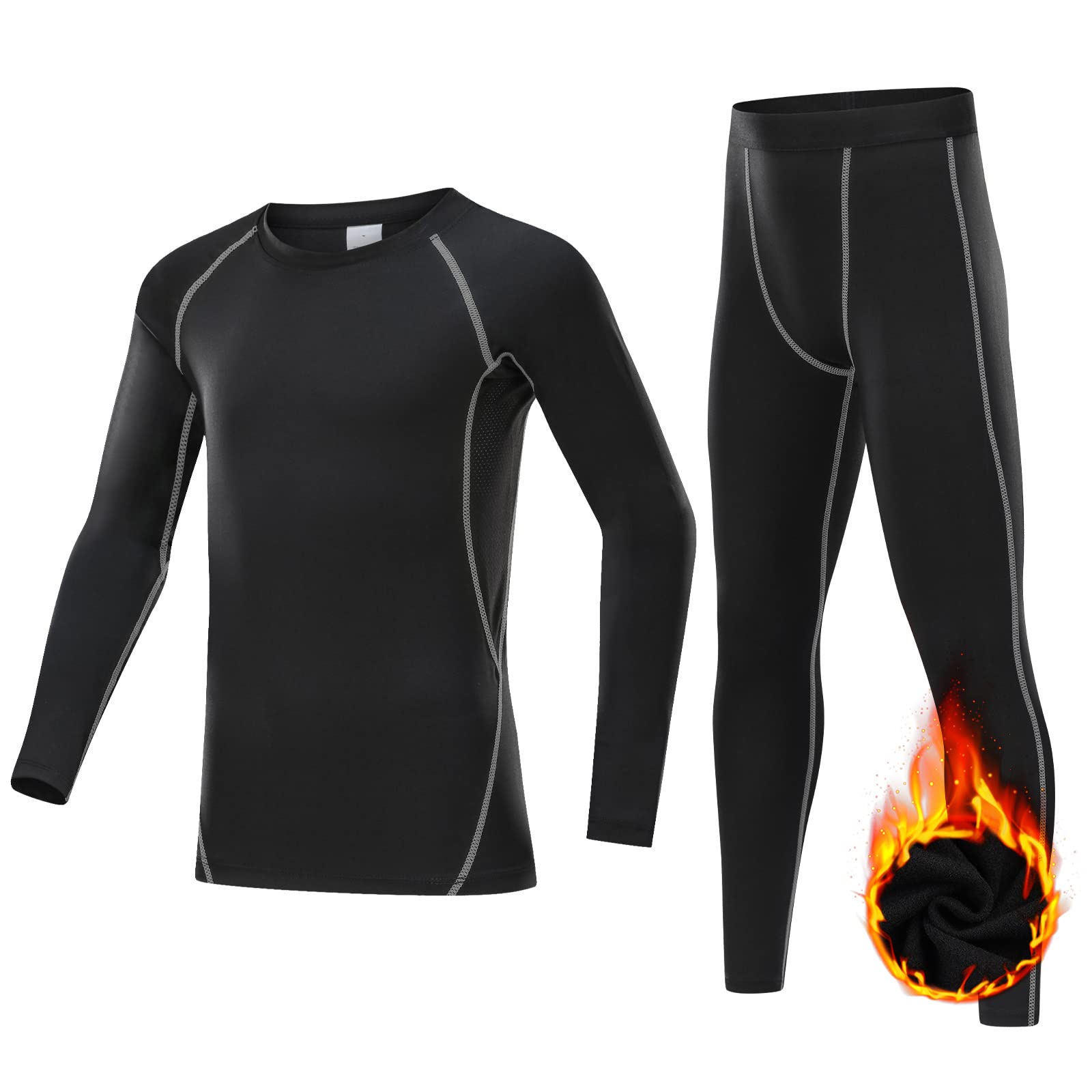 【送料無料】[Guooolex] スポーツインナー キッズ 上下セット コンプレッションウェア スポーツタイツ スパッツ シャツ 長袖 パワーストレッチ 吸汗速乾 色:ブラックグレー(上下セット)裏起毛、サイズ:130