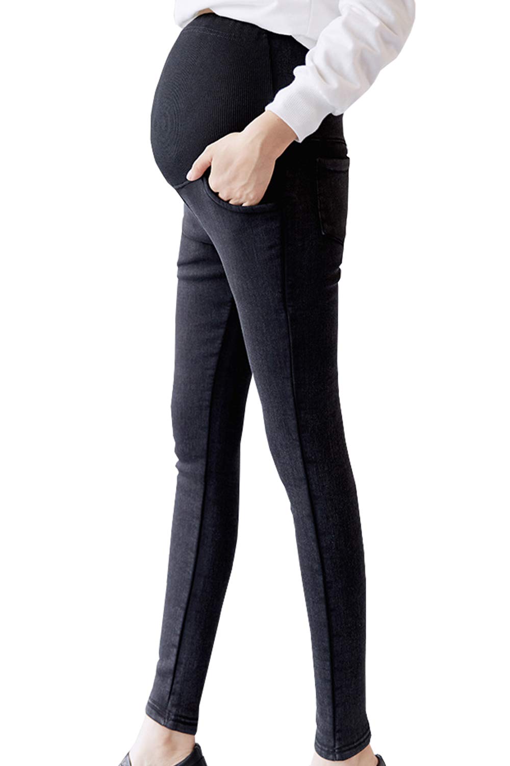 【送料無料】Ptika 美脚 マタニティ デニム パンツ ストレッチ ジーンズ 産前 産後 ウエスト調整 洗濯ネット付き 色:02_ブラック、サイズ:2XL