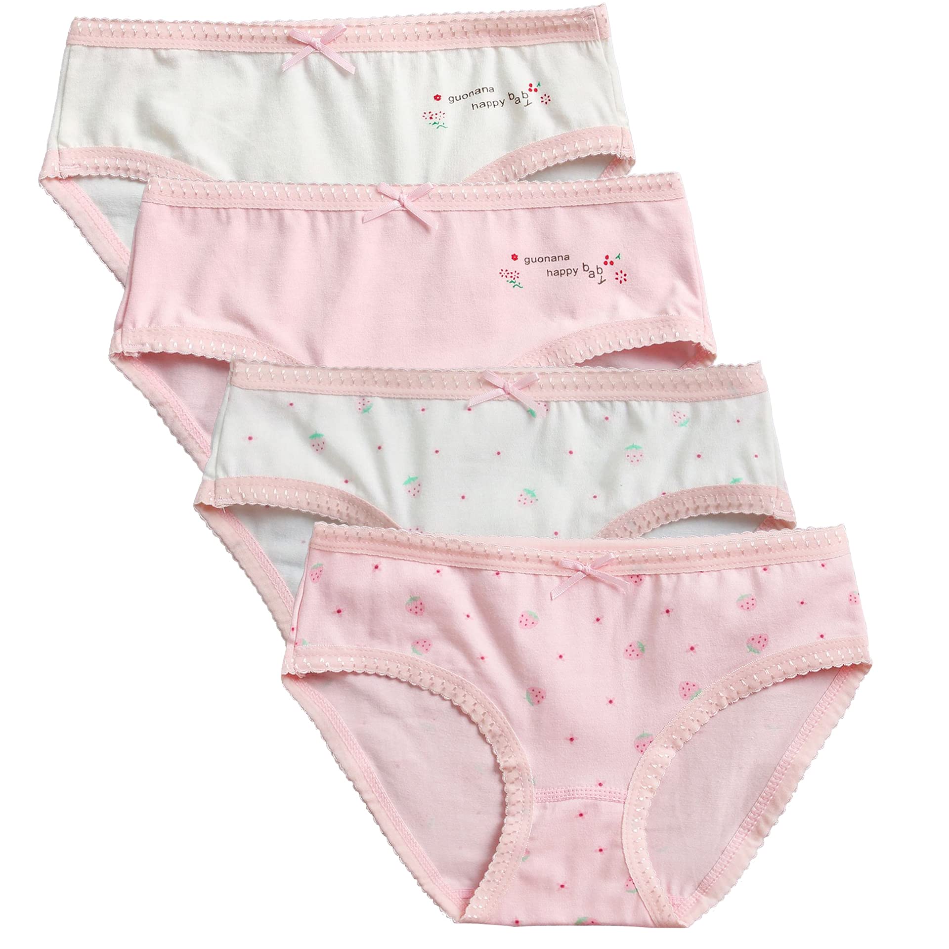 【送料無料】[eipatu] キッズ ガール パンツ 女の子 リボン インナー コットン 4枚セット 女児 ジュニア 下着 子供パンツ ショーツ かわいい 色:苺柄、サイズ:130