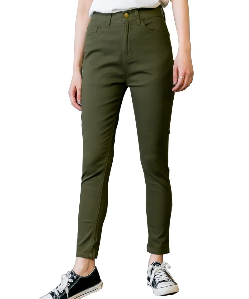 【送料無料】[atONE] [アットワン] レディース パンツ ボトム ズボン 選べる股下丈 美脚 ストレッチ スキニーパンツ デニム ジーンズ チノ M L LL 3L 4L XL 大きいサイズ ブラック 黒 色:カーキ、サイズ:W75 / L69