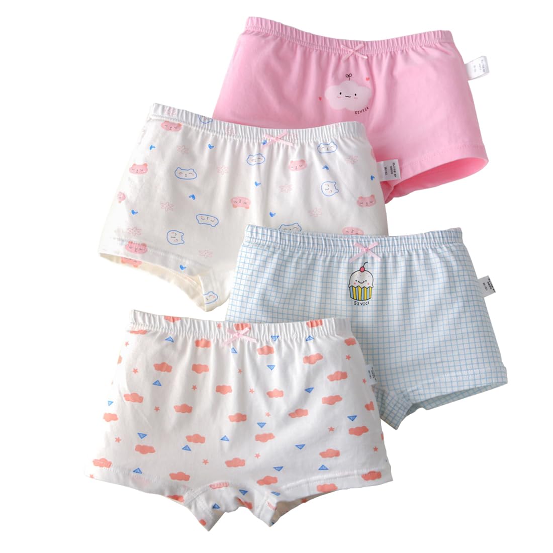 【送料無料】[eipatu] キッズ ボクサーパンツ ガールズ パンツ ショーツ 女の子 ジュニア リボン インナー コットン 4枚セット 赤ちゃん 下着 子供パンツ 肌着 柄 かわいい 色:猫柄、サイズ:100