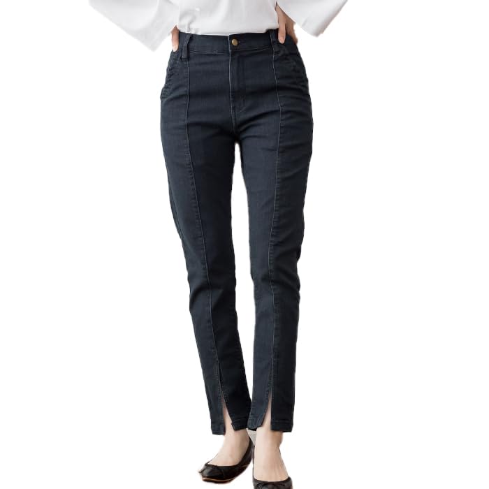 【送料無料】[atONE] [アットワン] ストレッチ デニム 裾スリット スリム パンツ レディース ストレッチ テーパード 伸縮 伸びる 大きいサイズ m l ll 3l 4l 春 夏 秋 冬 色:ワンウォッシュネイビー、サイズ:M