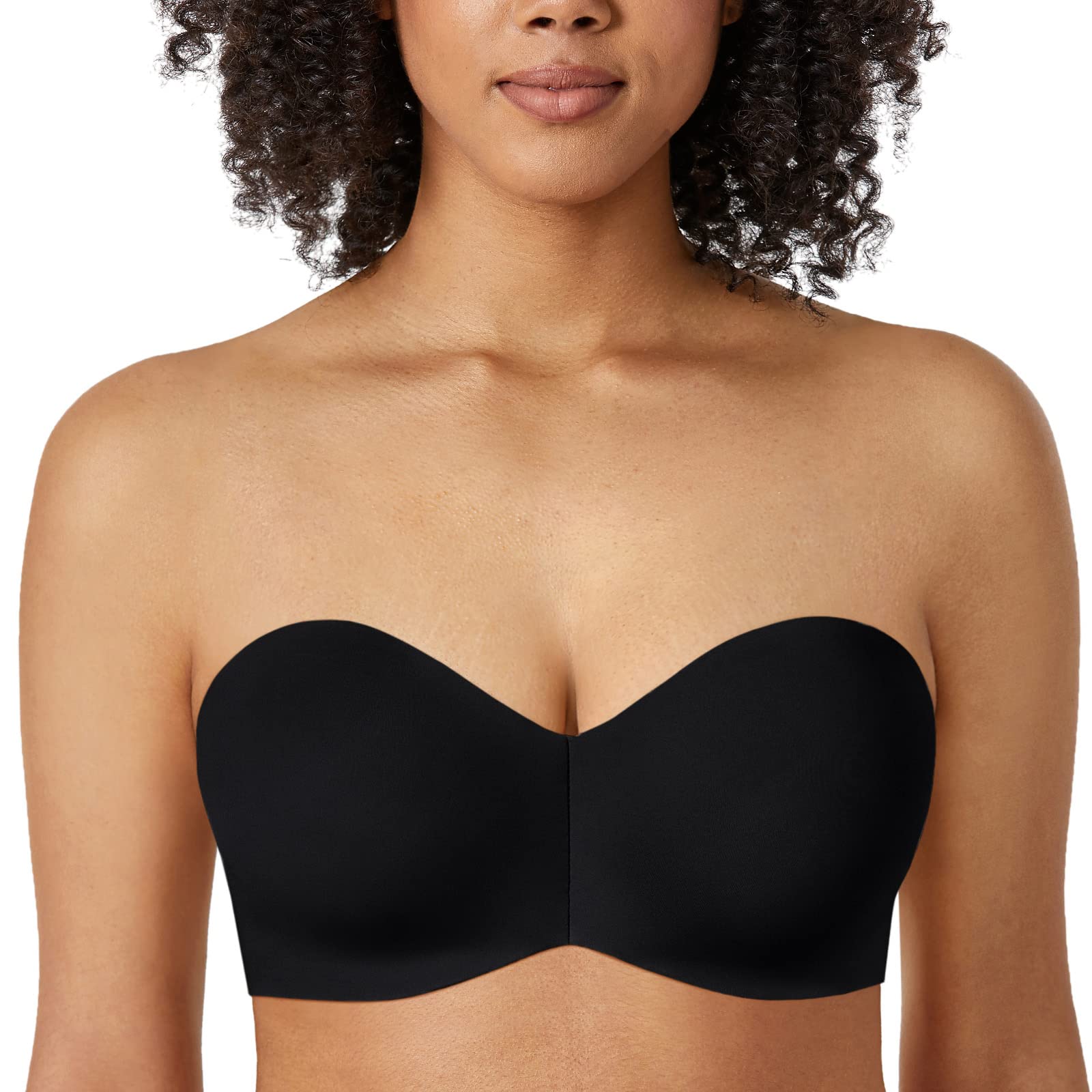 【送料無料】[DELIMIRA] ストラップレスブラ 大きいサイズ 落ちない ワイヤー入り パッドなし シームレス 大きいサイズブラ 肩紐なし 色:ブラック、サイズ:F90