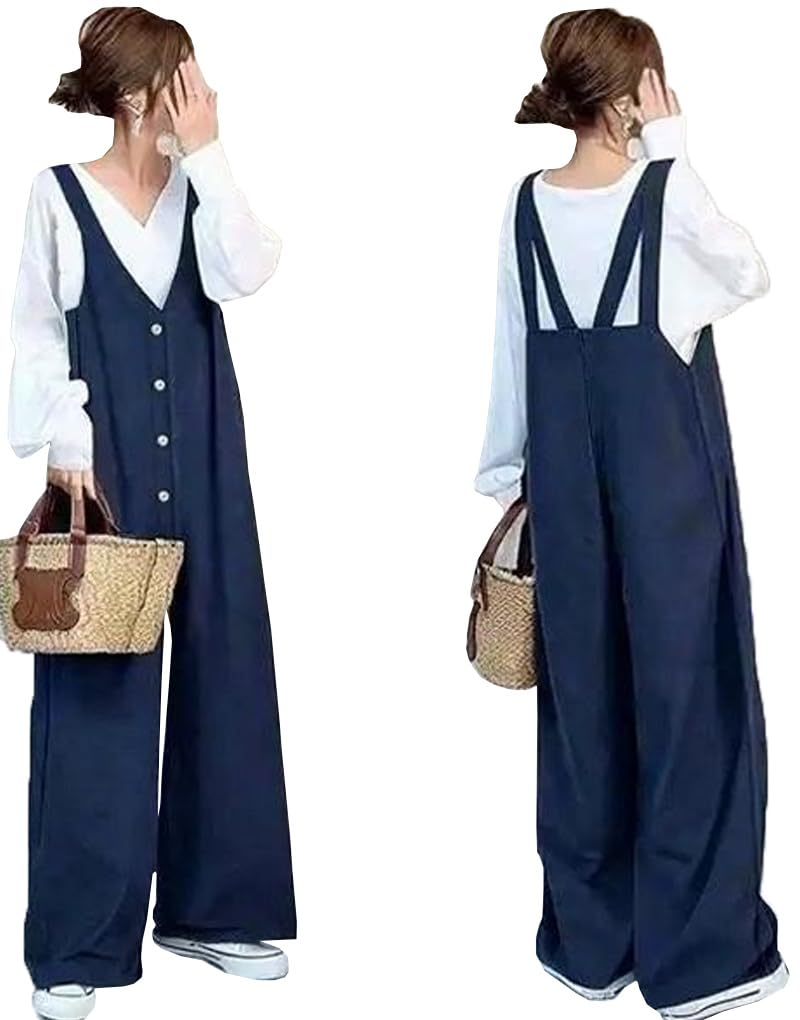 【送料無料】[DYIOPMFGZ] サロペット レディース オーバーオール オールインワン ロングパンツ サロペットパンツ ジャンパー パンツ ズボン ワイドパンツ おしゃれ ファッション かわいい マキシ カジュアル ロング ゆったり つなぎ 美脚 春夏 色:ブルー、サイズ:L