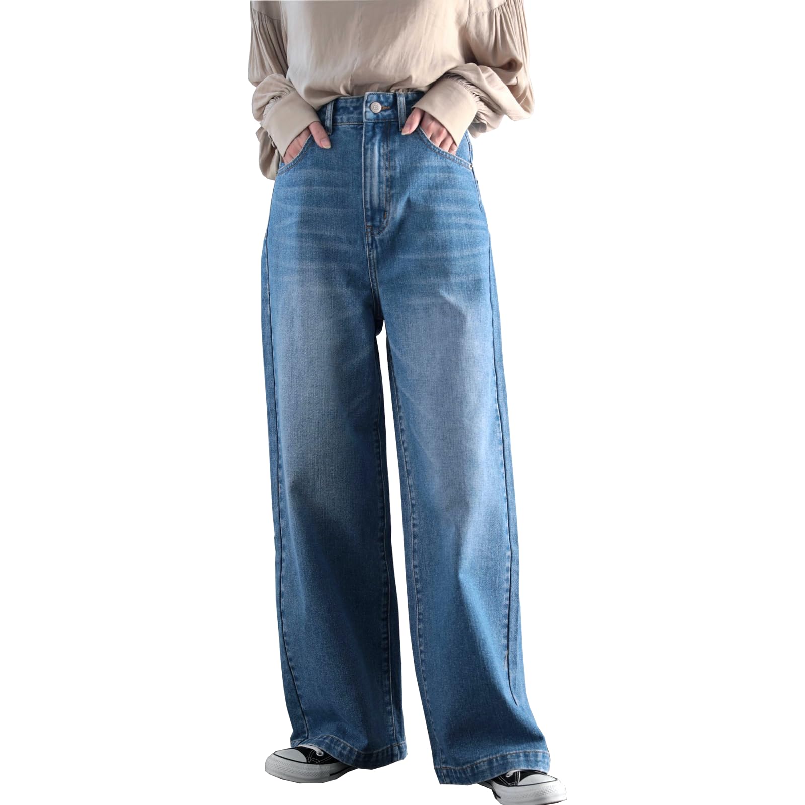 【送料無料】[ZeoYoee] デニムパンツ レディース ワイドパンツ ジーンズ 無地 ストレート ハイウエスト ズボン 体型カバー おしゃれ 美脚 着痩せ 通勤 普段着 春 夏 秋 色:ブルー、サイズ:XL