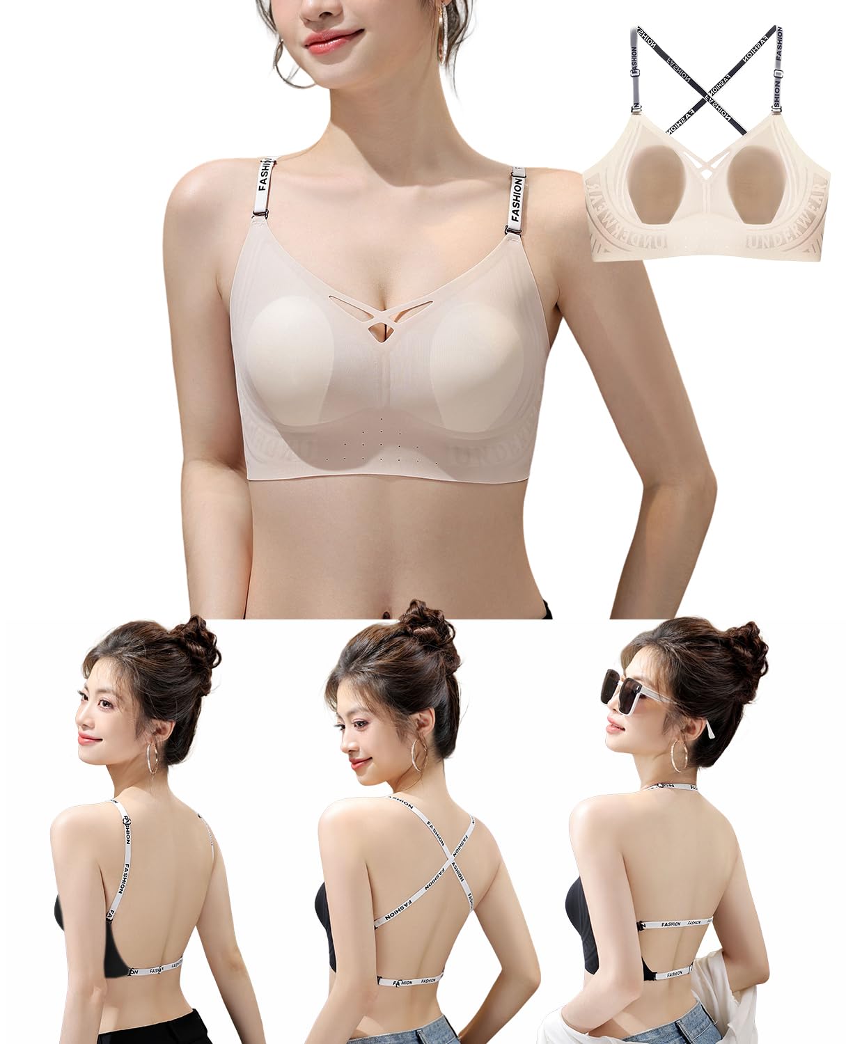 【送料無料】[Kayuuhin] ブラ 背中見せ 背中魅せ3WAYストラップ 薄型カップ ノンワイヤー シームレス 軽くて薄い 多様な着け方 肩・背中見せ レターストラップ 着こなし レディース インナー ドレス休暇ブラ 調節可能ダブルストラップ 色:肌色(1048)、サイズ:L