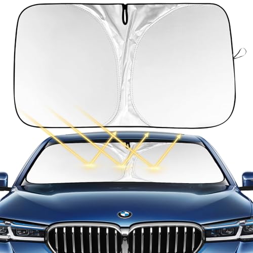 IUSOT サンシェード 車 フロント 車 日除け フロント 遮光率99% 車用サンシェード 簡単に取り付け 吸盤や中棒なし ダッシュボードを保