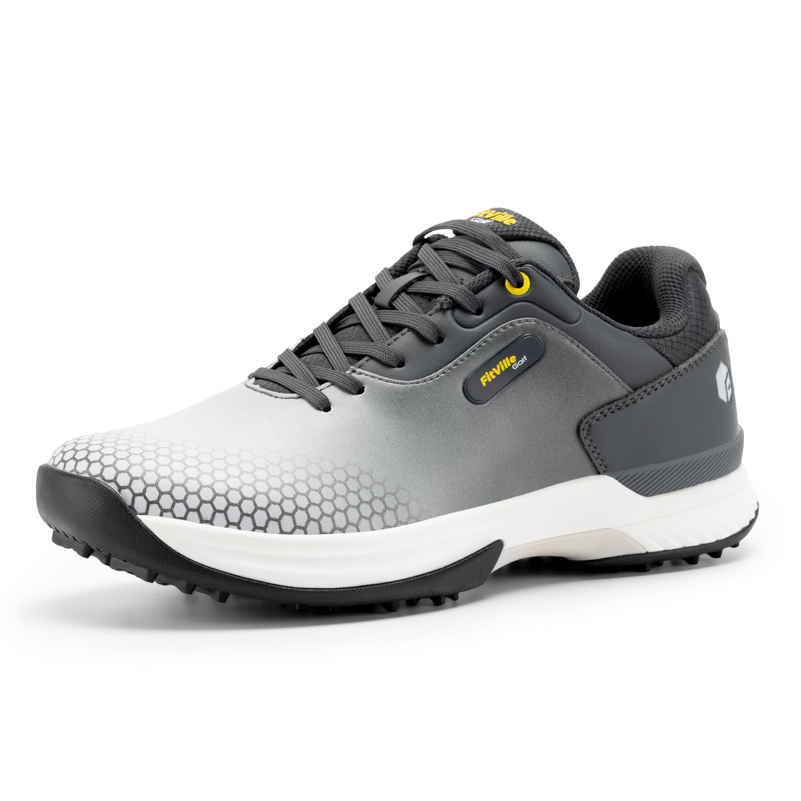 【送料無料】[FitVille] 幅広 ゴルフシューズ メンズ 2E 4E ゴルフ用 スニーカー スパイク 軽量 色:グレー、サイズ:25.0 cm 4E