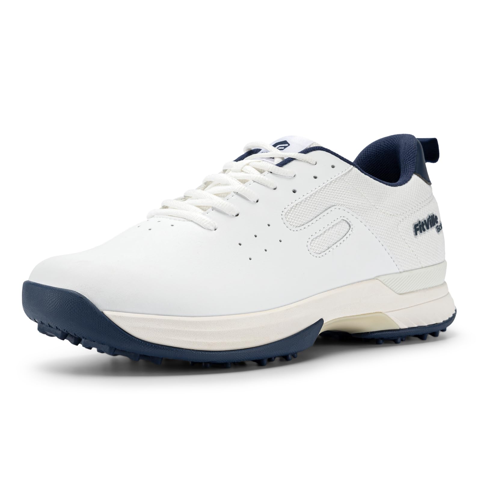 【送料無料】[FitVille] ゴルフシューズ メンズ 幅広 スパイク プロゴルフ 靴 男性用 ゴルフトレーニング スニーカー ビジネス運動 軽量 撥水 色:ホワイト、サイズ:28.0 cm 4E