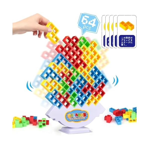 【送料無料】立体ブロック【日本語カード付 64個】バランスゲーム 知育玩具 (正方形)