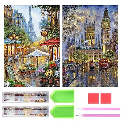 ダイヤモンドアート キット ダイヤモンドの絵画 2個セット きれい 全面貼り付け ダイヤモンドアート 5D 初心者 大人の子供 DIY 手芸キット 家の壁の装飾 (ストリートビュー)