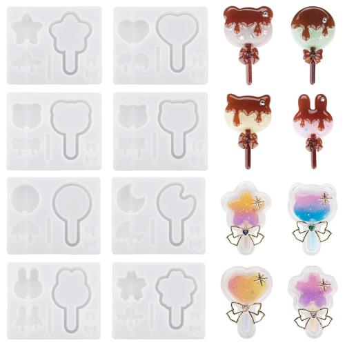 サムコス ロリポップ シリコンモールド 8個セット シャカシャカ流砂型 ハート ネコ 月 レジン シェイカーモールド シリコン モールド 鏡面 DIY 手作り キーホルダー 樹脂工芸品 アクセサリー (D)