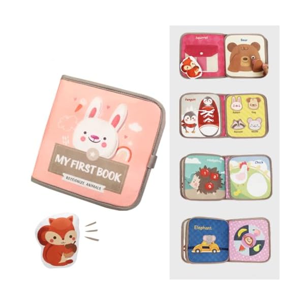 【送料無料】楽しい仕掛けがいっぱい! 布絵本 シールブック おでかけ布えほん モンテッソーリ ベビー/動物たち/果物&野菜テーマ 知育おもちゃ ソフトブック 破れない 布の玩具 指遊び 出産祝い プレゼント… (動物たち)