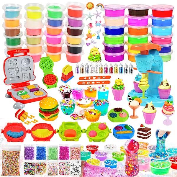 【送料無料】ねんど スライム おもちゃ 2IN1 42個粘土 小麦粘土 アイスクリーム ソフトクリーム ハンバーガー ラーメン粘土遊び 押し型 ねんど道具 お店屋さん アイス屋さん ごっこ遊び おままごと おもちゃ クリスマス スライム キット