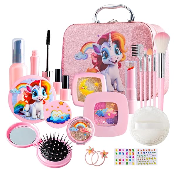 メイクおもちゃ 化粧品おもちゃ コスメセット メイクアップおもちゃ メイクボックス ユニコーン 収納トランク 色が付けない 子供用 女の子 22PCS なりきり ごっこ遊び おもちゃ 誕生日 クリスマス プレゼント 6歳以上
